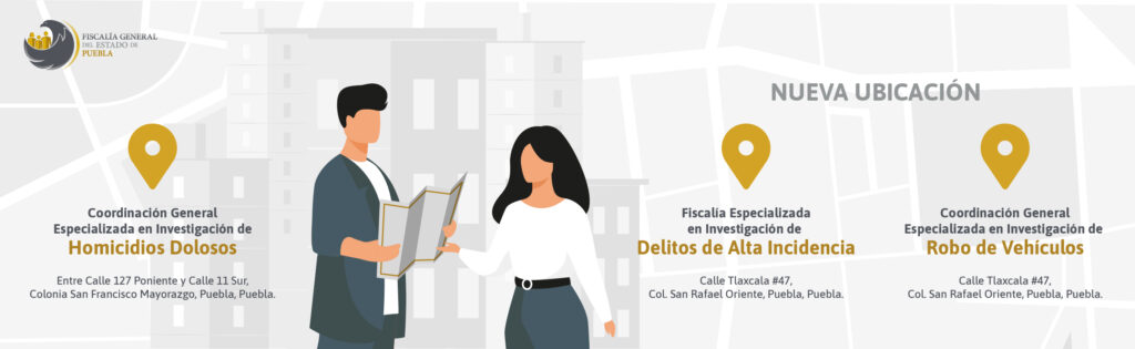 Como parte de la reorganización para atender a víctimas y usuarios, la Fiscalía General del Estado de Puebla anuncia el cambio de sedes de áreas especializadas en delitos de alta incidencia, homicidios y robo de vehículos.