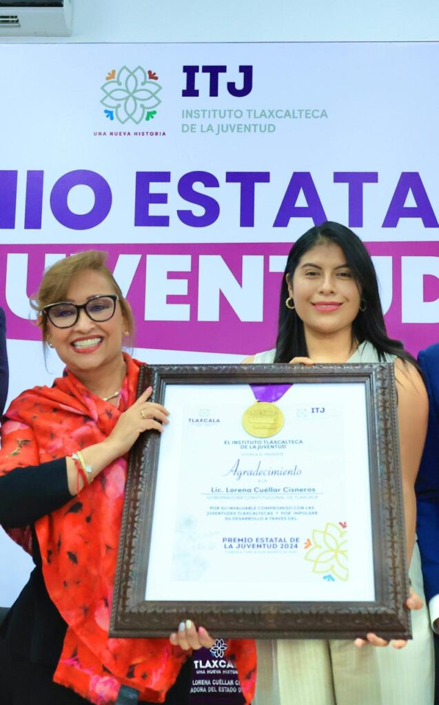 Este lunes 12 de agosto, la gobernadora de Tlaxcala, Lorena Cuéllar Cisneros entregó el Premio Estatal de la Juventud 2024.