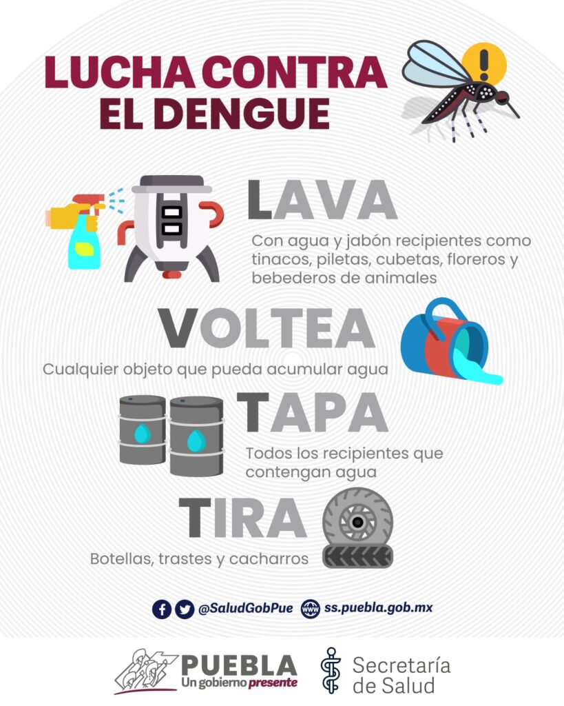 En ese sentido, el gobierno presente de Sergio Salomón exhorta a las y los poblanos a que acudan a la unidad médica más cercana en caso de presentar fiebre alta, dolor muscular o de articulaciones, náuseas y vómito, dolor de cabeza y sarpullido a fin de recibir la atención adecuada.