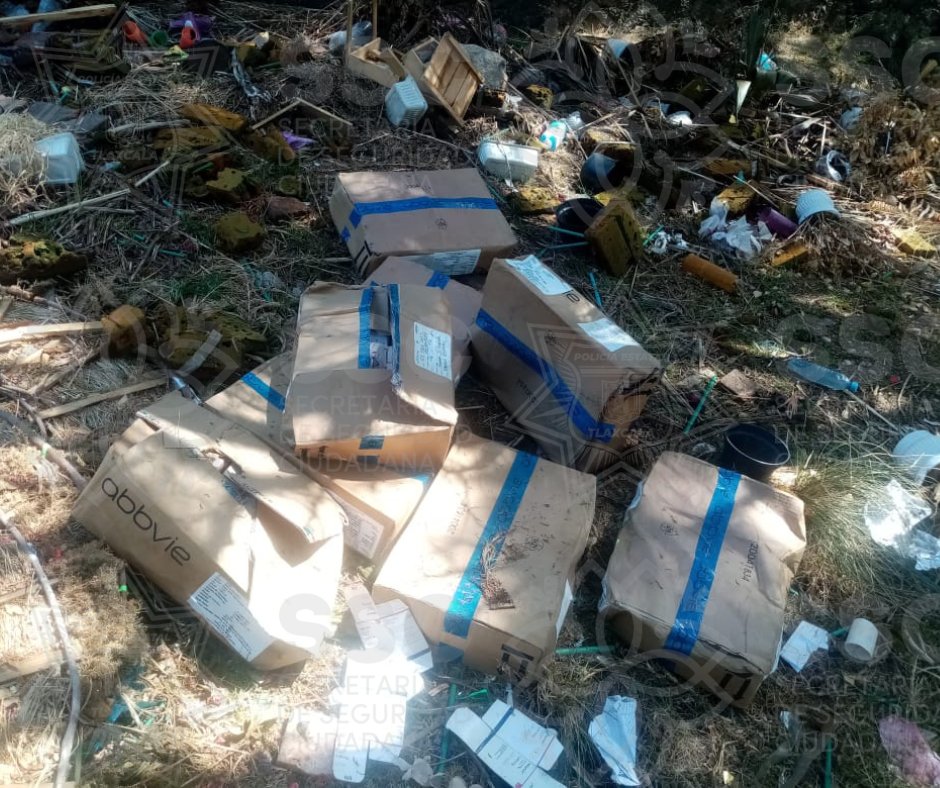 Por lo anterior, elementos del Grupo de Reacción adscritos a la Dirección de Seguridad Pública confirmaron que se localizaron ocho cajas con medicamento caduco y abandonadas en un terreno baldío.