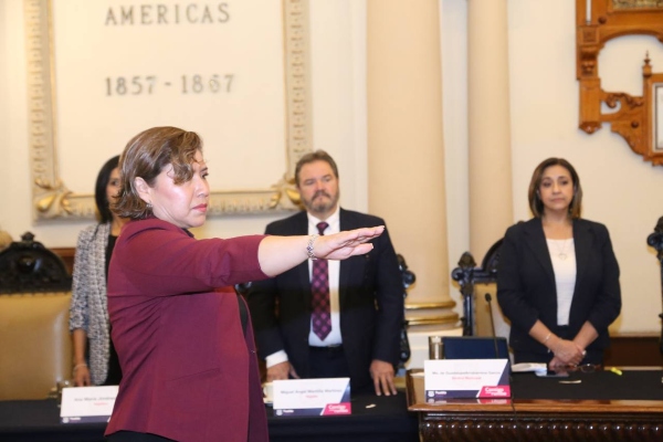 El alcalde de Puebla, Eduardo Rivera Pérez, tomó protesta a la regidora suplente Araceli Caselín Espinoza, quien ocupará el lugar de la fallecida Ana Laura Martínez Escobar.