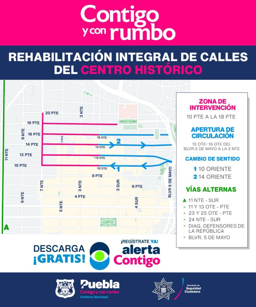 En rueda de prensa, mencionó además que iniciarán los cambios de sentido en la 10 y 14 oriente poniente, las cuales serán exclusivas para transporte público en Puebla.