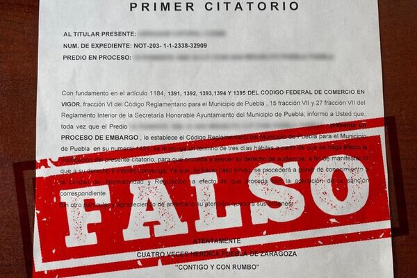 “Están llegando unos citatorios, trae por su puesto un logo de la administración municipal. Dice que este citatorio es una audiencia para manifestar lo que a su derecho convenga, vienen tres teléfonos a los cuales se pueden comunicar los poblanos… totalmente falso”, expresó.