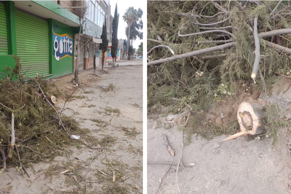 Por otra parte, ciudadanos denunciaron también un hecho similar en la calle 1 Norte y 28 Oriente, donde personas no identificadas rompieron la banqueta y cortaron un árbol.