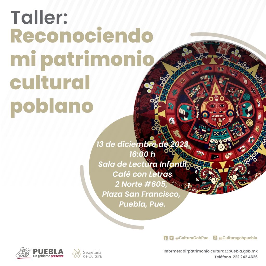Como parte de las actividades contempladas en el programa “Reconociendo mi patrimonio cultural poblano”, que el gobierno presente de Sergio Salomón promueve para acercar e inculcar el valor patrimonial del estado a las nuevas generaciones, la Secretaría de Cultura ofrecerá el taller “Un Calendario Azteca”, el miércoles 13 de diciembre a las 16:00 horas.