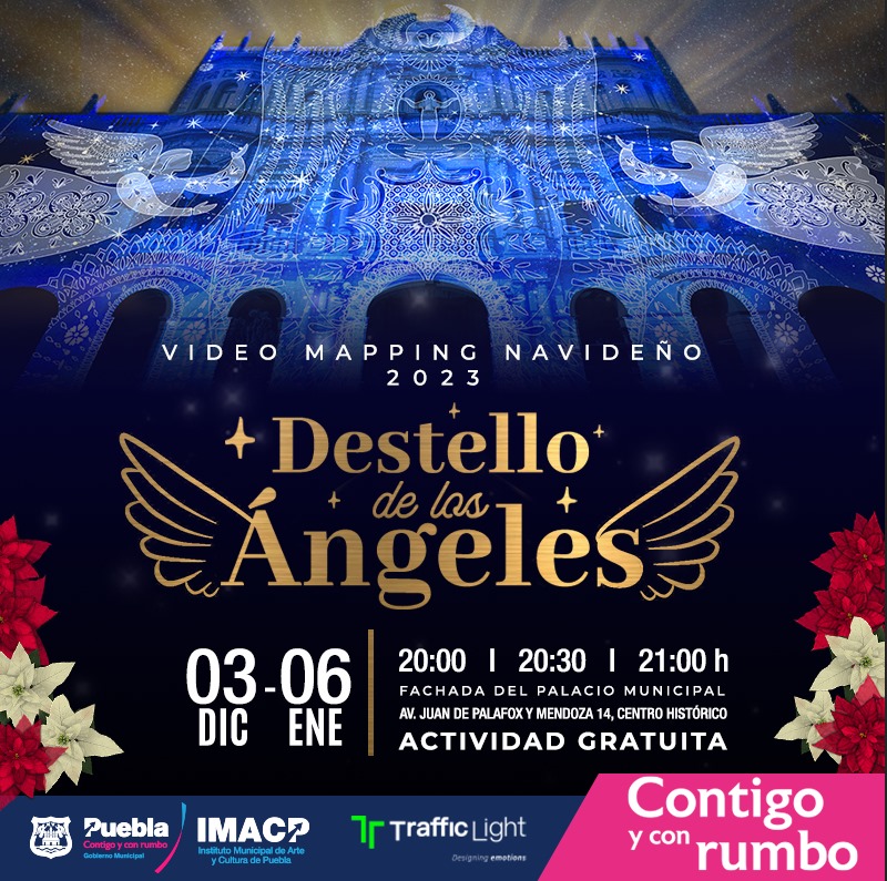 El domingo 03 de diciembre vuelve al mediodía la Banda Sinfónica Municipal al Zócalo de la ciudad y a las 15:00 horas tendrá lugar el Festival Navideño de Rondallas Puebla 2023. Además, comenzará el video mapping navideño ‘Destello de Los Ángeles’ en la fachada de Palacio Municipal, con horarios de 20:00, 20:30 y 21:00 horas, y estará hasta el 6 de enero.