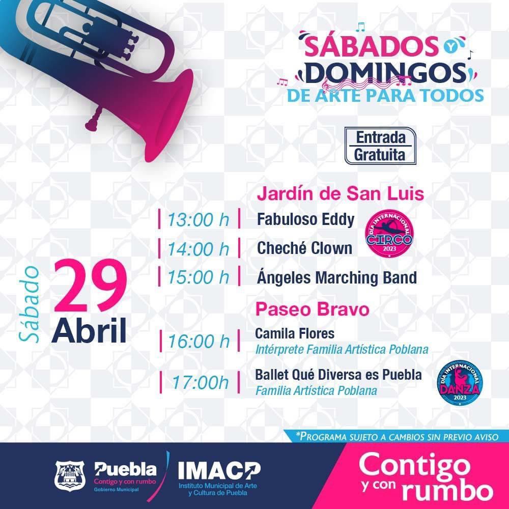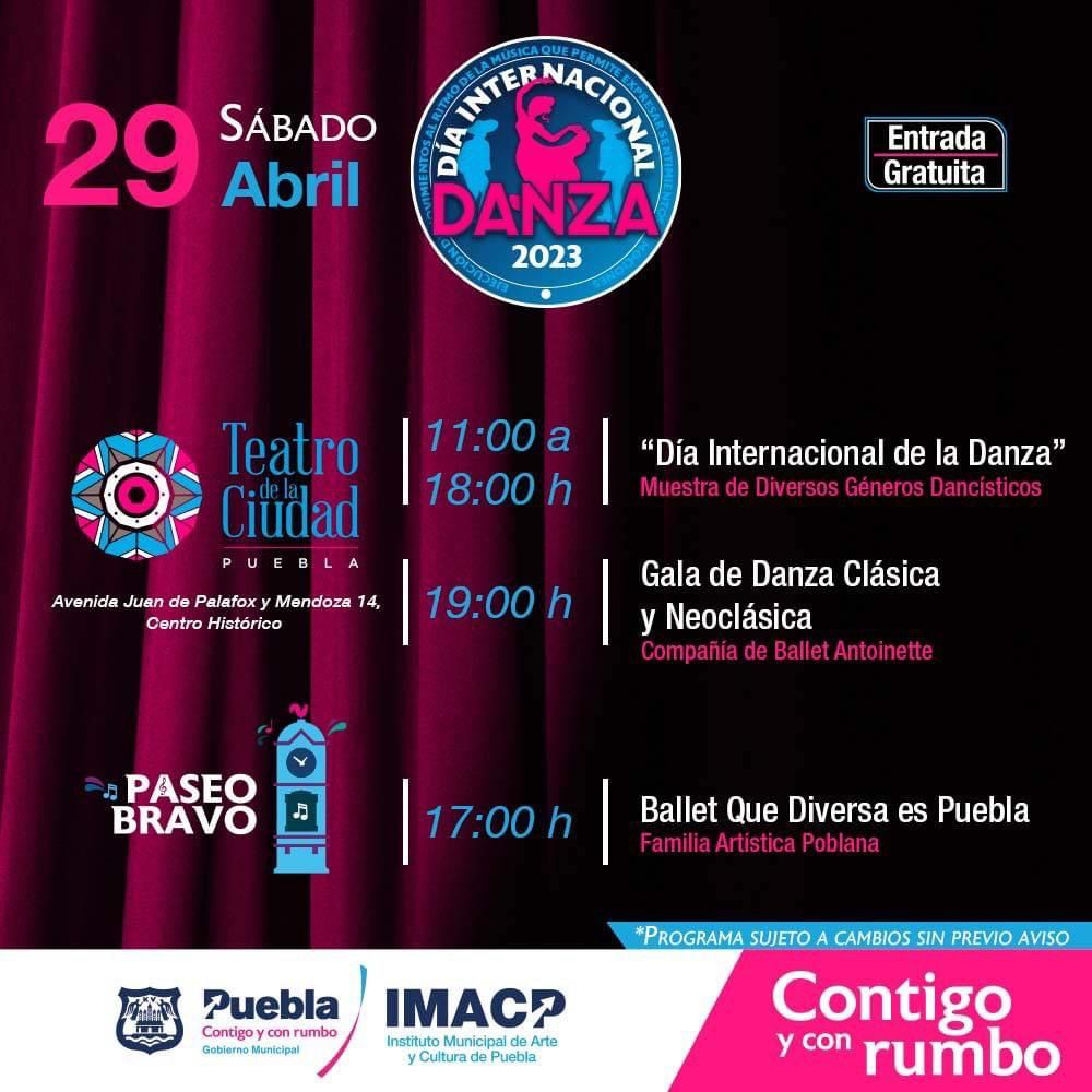 El Ayuntamiento de Puebla, a través del Instituto Municipal de Arte y Cultura (IMACP) ofrece diversas actividades culturales para celebrar el Día del Niño y la Niña, el Día Mundial del Circo y el Día Internacional de la Danza.
