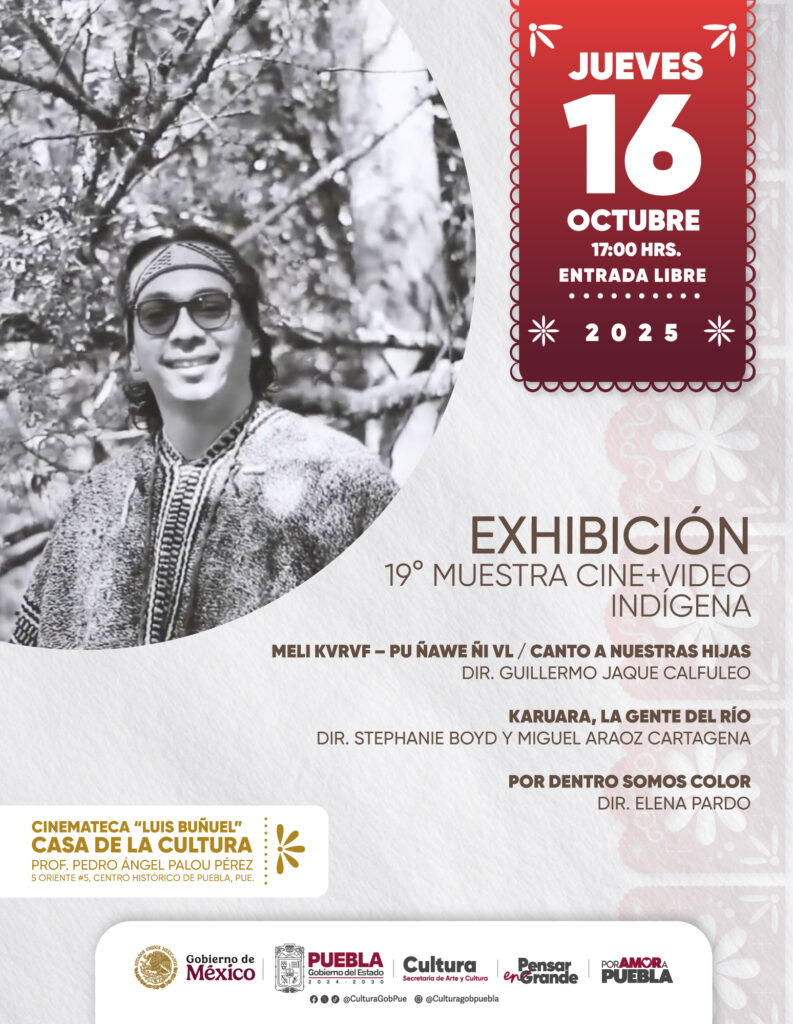 El Gobierno del Estado de Puebla, a través de la Secretaría de Arte y Cultura, inició las proyecciones de la 19ª Muestra de Cine + Video Indígena, que se desarrollarán del 15 al 18 de octubre en la Cinemateca “Luis Buñuel”. Este ciclo promueve la difusión de las culturas originarias y su representación audiovisual a través de historias contadas desde las propias comunidades, en las que la cinematografía se convierte en un puente entre la memoria, la identidad y el diálogo intercultural.