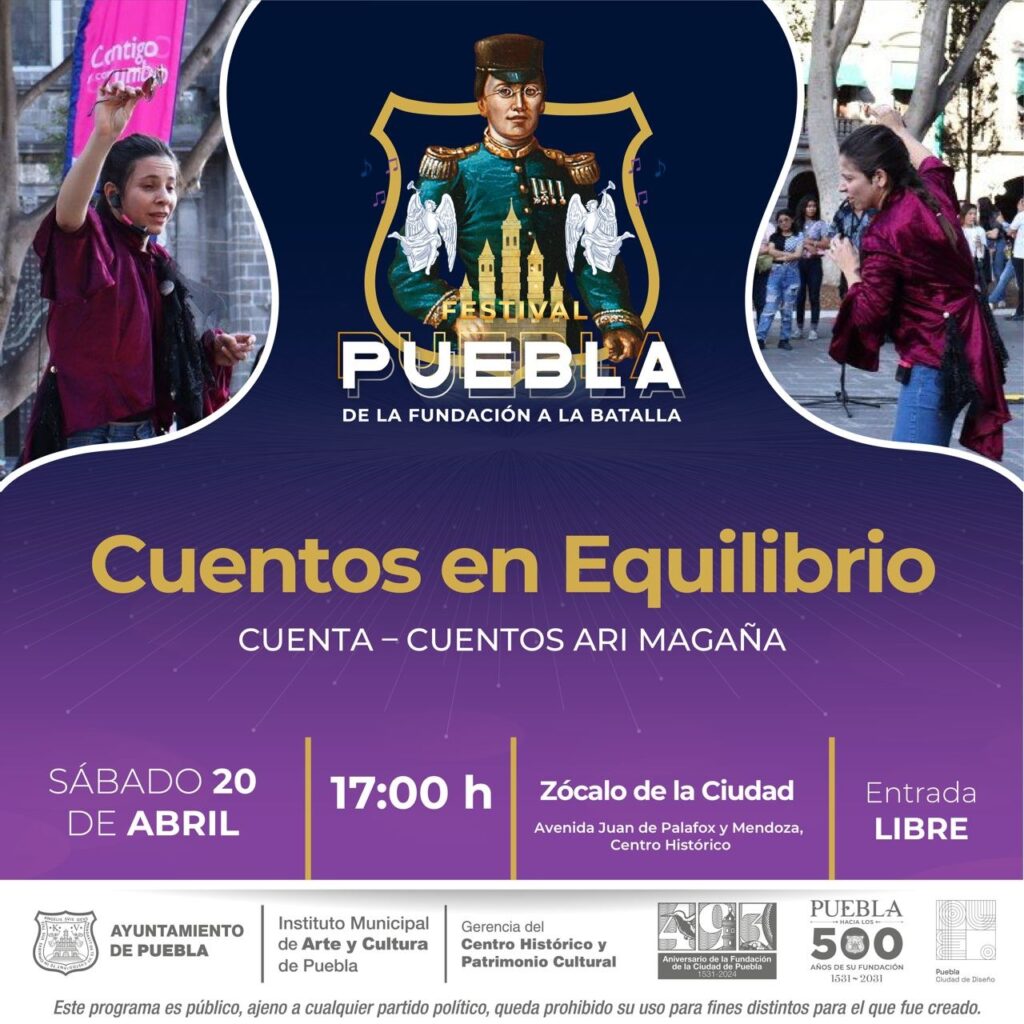 El Ayuntamiento de Puebla informa sobre los eventos que se realizarán durante el fin de semana como parte del “Festival Puebla” que organiza el Instituto de Municipal de Arte y Cultura (IMACP) en el marco del 493 aniversario de la Fundación de la Ciudad.