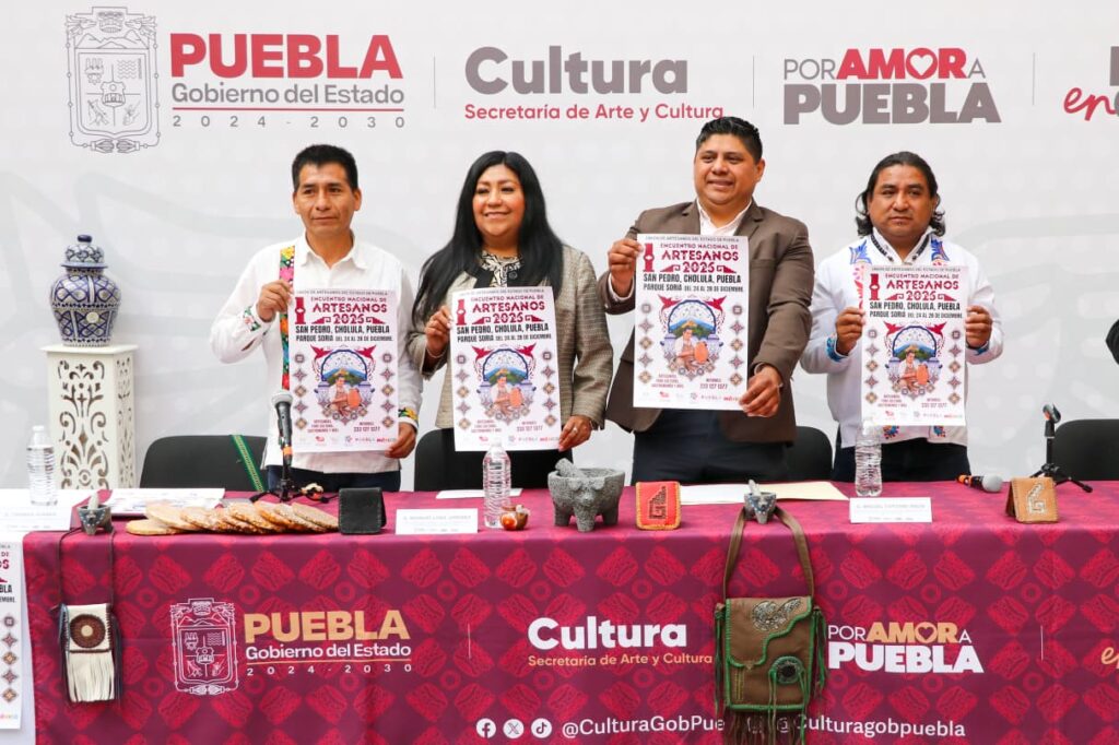 Con el objetivo de reconocer y difundir el valor cultural histórico y productivo de las artesanías mexicanas, presentan Primer Encuentro Nacional de Artesanos 2025, que tendrá lugar del 24 al 28 de diciembre en el Parque Soria, en el centro de San Pedro Cholula.