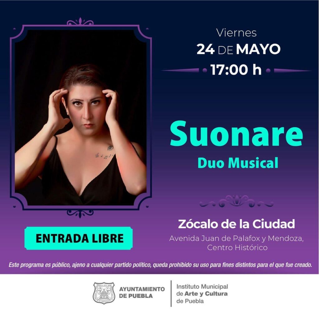 Este viernes 24 de mayo, en el zócalo de la ciudad de Puebla, se desarrollarán espectáculos musicales de rock alternativo, de 17:00 a 18:00 horas. En paralelo, comenzarán las Noches Musicales a las seis de la tarde en la Casa de la Bóveda BUAP, y el día culminará con una demostración de flamenco, a las 20:00 horas en el corazón de la ciudad .