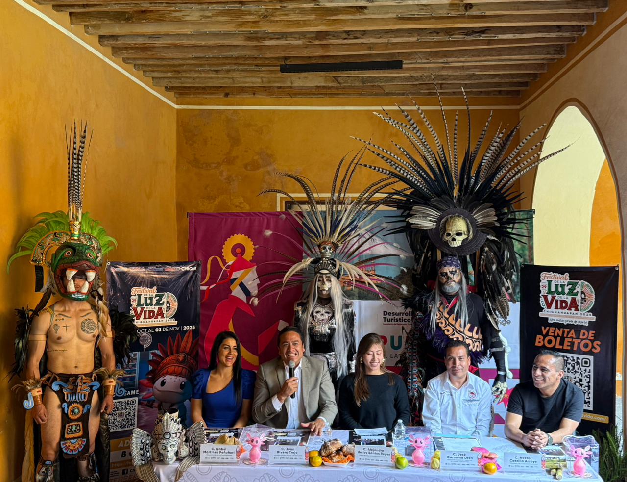Por su parte, el presidente municipal de Chignahuapan, Juan Rivera Trejo, informó que el municipio está listo para recibir a visitantes locales, nacionales e internacionales en un ambiente seguro, ordenado y hospitalario. Anunció que, como parte de las novedades de esta edición, se renovó la emblemática Pirámide de Luz, con una estructura tridimensional y gradas flotantes sobre la laguna, además de una ofrenda monumental con mil luces que simboliza el tránsito entre la vida y la muerte.