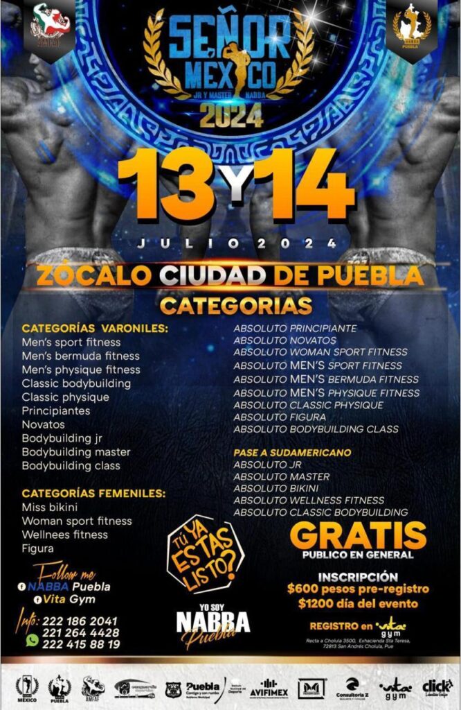 Por su parte, Mauricio Velázquez Mondragón, Organizador del Evento y Presidente NABBA Puebla, detalló que este evento de fisicoculturistas contará con la participación de competidores de CDMX, Tlaxcala, Oaxaca, Veracruz, Monterrey, Jalisco, Chihuahua, Sonora, Yucatán, Querétaro, Hidalgo, Aguascalientes, Michoacán, Guanajuato, Coahuila, Baja California y Puebla, de los cuales, saldrán los cinco ganadores que representarán a México en el próximo Campeonato Sudamericano que se llevará a cabo en Lima, Perú.