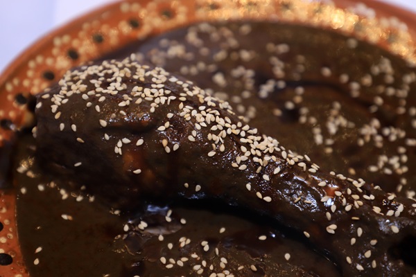 Por su parte, Rogelia Ventura Ramos y Yolanda Palillero, detallaron que este mole se caracteriza porque no lleva azúcar ni chocolate, un sabor más fuerte que el preparado en la zona metropolitana de Puebla, y se acompaña con un tamal conocido como tlapaxtamal. Asimismo, abundaron que los ingredientes principales de este platillo ancestral son: chile mulato, galleta, almendras, pasas, ajonjolí, aguacate y plátano macho, entre otros.