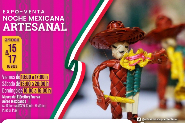Del 15 al 17 de septiembre, el gobierno presente de Sergio Salomón, a través de la Secretaría de Cultura, llevará acabo la expo-venta Noche Mexicana Artesanal en el Museo del Ejército y Fuerza Aérea Mexicanos, ubicado en Avenida Reforma número 1305, colonia Centro.