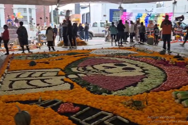 El Presidente Municipal, Alfonso Vélez Merino, explicó que desde el pasado domingo se realizó el trazo del dibujo para después rellenar con coliflor picada usada en el rostro de la catrina, lechuga picada para los detalles en verde, jitomate de invernadero, chiles, cebollas y algunas frutas como naranjas, platanos y guayabas.