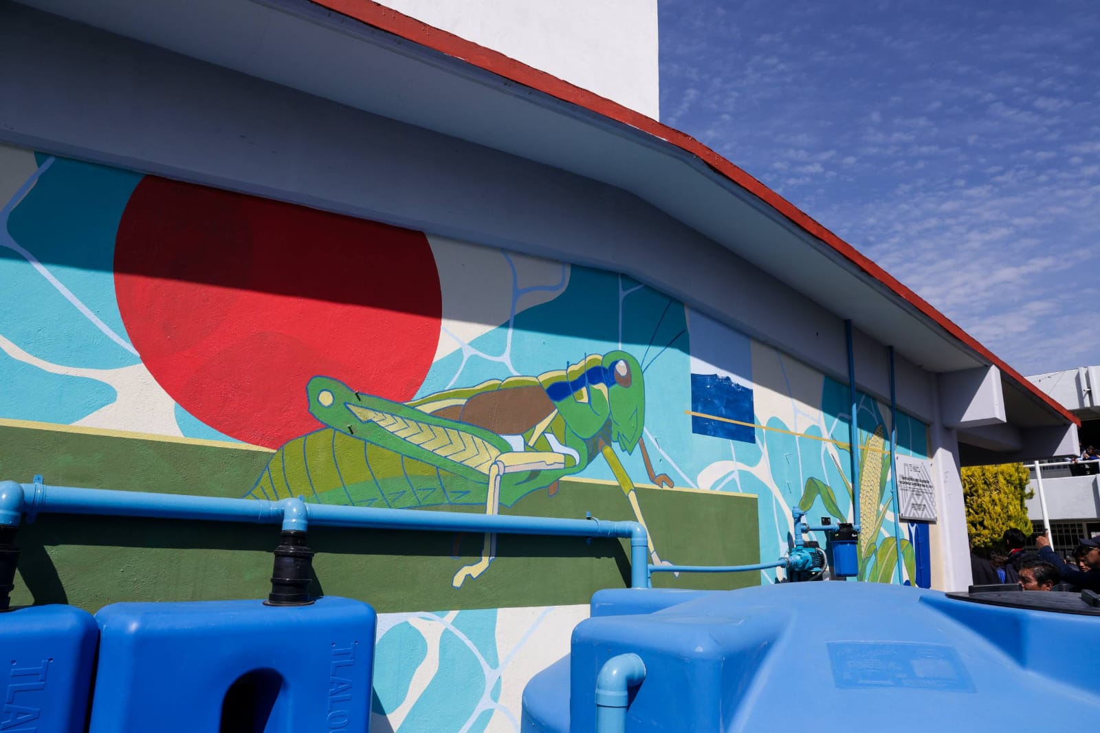 Como parte de esta estrategia integral, se inauguró un mural con un mensaje artístico enfocado en la importancia del cuidado del agua, mismo que fue diseñado y pintado por personal especializado, con la participación de alumnas y alumnos en la construcción de ideas bajo la temática del uso consciente del agua.