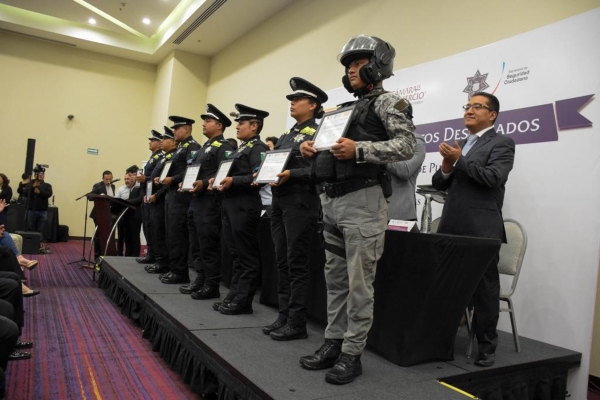Por ser un ejemplo de compromiso y entrega en favor de la seguridad de las familias poblanas, 35 elementos de la Policía Municipal de la capital recibieron un reconocimiento de la inciativa privada, por la Cámara de Comercio, Servicios y Turismo de Puebla (CANACO) y Grupo OXXO.