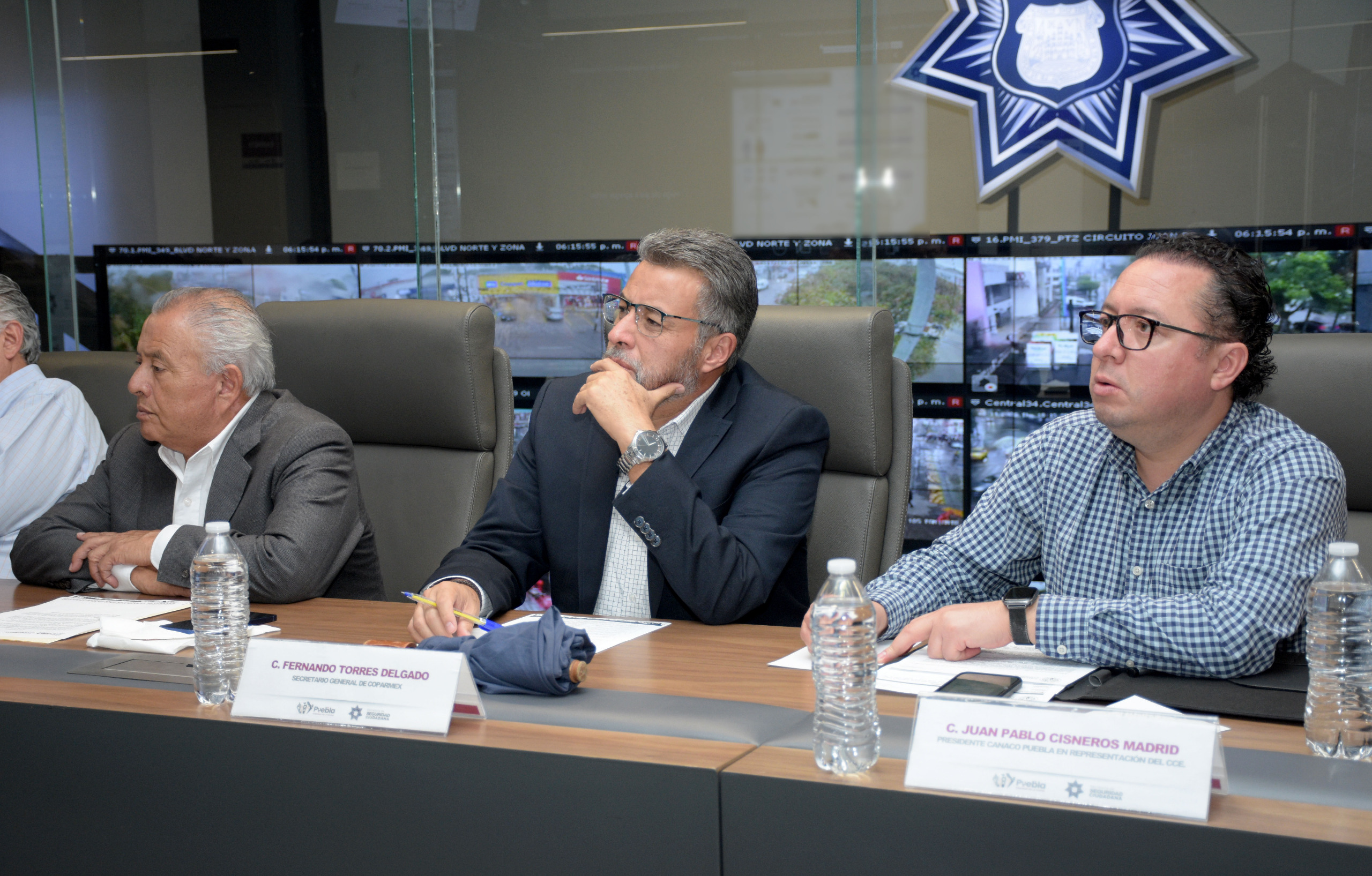 Además de Víctor Silva Tapia, secretario Técnico Regional; el fiscal de Ejecución de la FGR en Puebla, Oliverio Ramos González; Fernando Torres Delgado, secretario general de Coparmex; Juan Pablo Cisneros Madrid, Presidente de la CANACO Puebla; y, la directora General de Emergencia y Respuesta Inmediata, Alejandra Cedillo May.