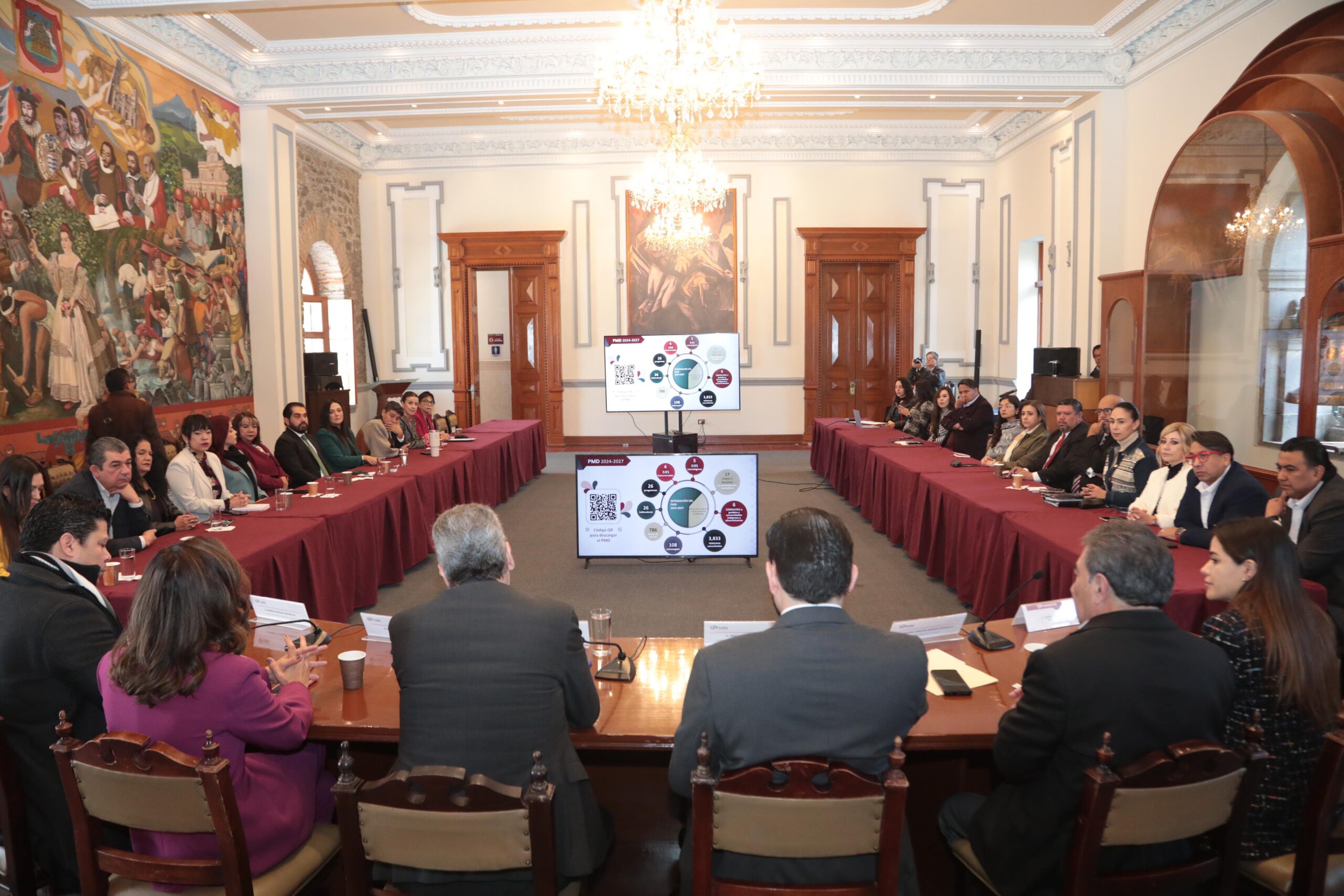 El presidente municipal, Pepe Chedraui Budid, participó en una mesa de trabajo con las y los regidores de la capital para informarles sobre los avances de la propuesta del Plan Municipal de Desarrollo 2024-2027, misma que será presentada para su aprobación en Sesión de Cabildo del Ayuntamiento de Puebla.