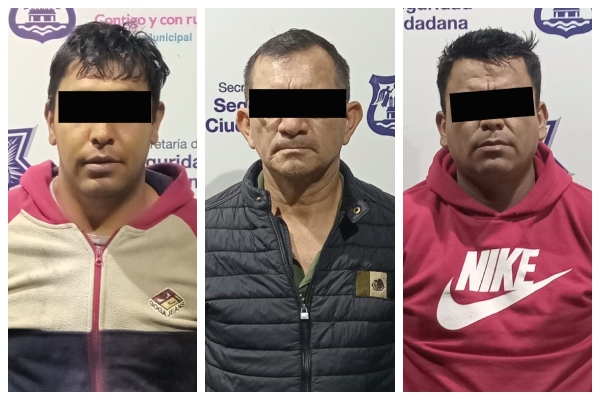 En atención y seguimiento policial a un reporte ciudadano, elementos adscritos a la Unidad Táctica de Reacción (UTR) y del Grupo de Intervención Proactiva (GIP), tras una persecución lograron la detención en el municipio vecino de San Juan Cuautlancingo, de Gonzalo “N.”, alias “El Viejo” y/o “El Militar”, de 55 años de edad, Alfredo “N.”, alias “El Feyo”, de 31 años de edad y Óscar “N.”, alias “El Franklin”, de 28 años de edad.