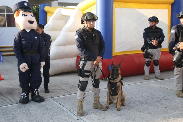 Se trató de un acercamiento que encabezó Adán Domínguez Sánchez, Gerente Municipal, y que contó con la participación de grupos especiales de la Secretaría de Seguridad Ciudadana (SSC), como Tránsito, Unidad Canina K9, Reacción Operativa Contra Asaltos (ROCA) y Protección Civil, quienes realizaron exhibiciones interactivas con la comunidad estudiantil y docente.