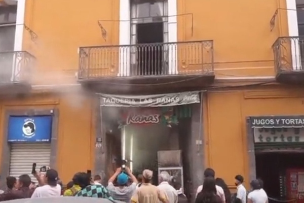 La tarde del sábado 23 de abril la taquería Las Ranas, ubicada en la 2 Poniente esquina con calle 5 de Mayo en el Centro Histórico de Puebla, registró un incendio.