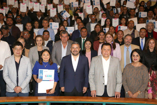 Como un reconocimiento al esfuerzo y dedicación de las y los trabajadores del Ayuntamiento de Puebla, Adán Domínguez Sánchez -Presidente Municipal de Puebla– entregó nombramientos de base, mismos que fueron aprobados por Cabildo en el mes de junio.