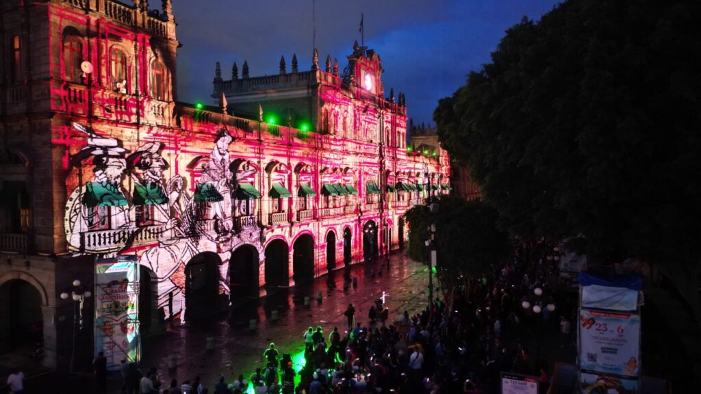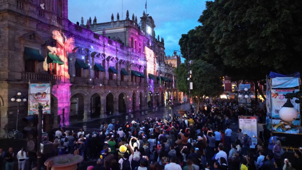 “Puebla: Ciudad de Guardianes” es el nuevo videomapping que se puede apreciar hasta el 6 de agosto, en funciones de ocho minutos a las 19:30, 20:15 y 20:45 horas, en la fachada de Palacio Municipal.