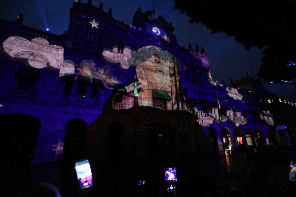 “Puebla: Ciudad de Guardianes” es el nuevo videomapping que se puede apreciar hasta el 6 de agosto, en funciones de ocho minutos a las 19:30, 20:15 y 20:45 horas, en la fachada de Palacio Municipal.