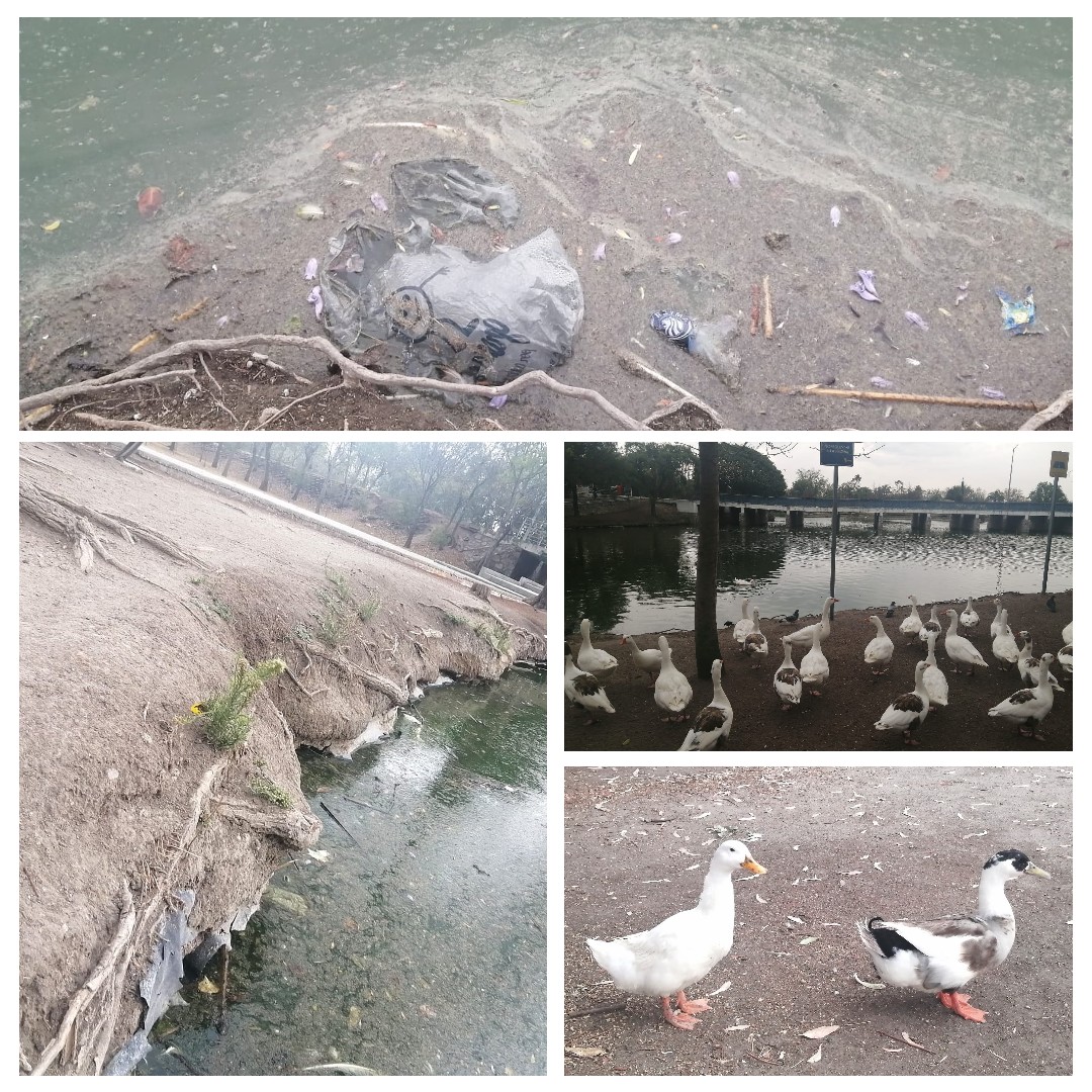 Entre cubrebocas, basura y agua visiblemente sucia viven los patos que se encuentran en el lago artificial del Parque Ecológico “Revolución Mexicana” de la ciudad de Puebla.