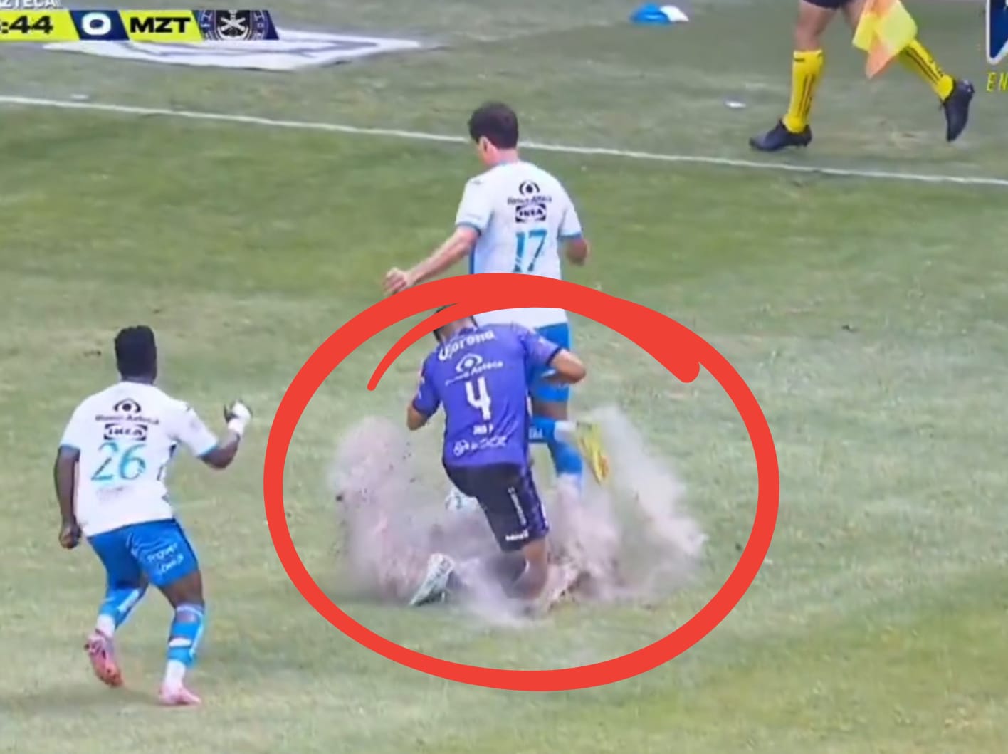 A nivel de cancha, se grabaron otros videos en los que se pudo ver que el césped está seco, de ahí la facilidad de desprendimiento con cualquier movimiento de los jugadores.