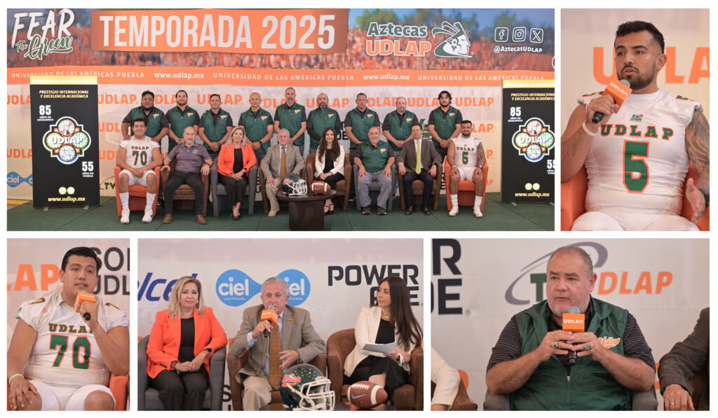 Con un equipo con más de 70 años de vivir la excelencia de los estudiantes deportistas, quienes trabajan a diario para forjar la leyenda de los Aztecas, la UDLAP celebra el regreso del futbol americano y levanta el telón de la temporada 2025 con la presentación ante los medios de comunicación del equipo dirigido por el head coach Raúl Rivera Sánchez, quien aseguró que buscará la consolidación del representativo de la UDLAP tanto en lo académico, como en lo deportivo acorde a la historia. “Los Aztecas son el cuarto equipo más ganador en la historia de la ONEFA y el cuarto equipo más antiguo vigente, por lo que nuestro compromiso es asumir la responsabilidad de dirigirlo y tomar el lugar que nos corresponde: Competir en los primeros planos y buscar el campeonato nacional cada temporada”, expresó.