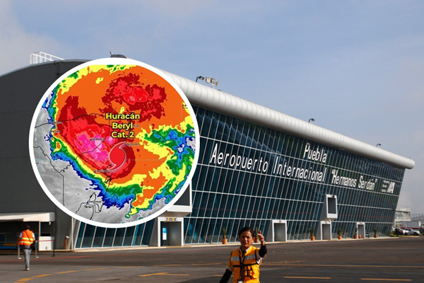 Debido a la llegada del huracán Beryl a Tulum, en la península de Yucatán, el Aeropuerto Hermanos Serdán de Puebla canceló los vuelos programados para este viernes 5 de julio con destino a Cancún.