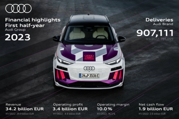En el primer semestre de 2023, el grupo de la marca entregó un total de 919,548 vehículos. Esto corresponde a un aumento significativo del 15.3 por ciento en comparación con el período del año anterior (797,587 vehículos). La marca Audi registró un aumento significativo en las entregas (907,111 vehículos) de casi el 16 por ciento en la primera mitad de 2023 en comparación con la primera mitad de 2022, continuando así su camino de crecimiento. Audi logró su mejor junio en términos de entregas a clientes, con un total de 182,075 vehículos vendidos.