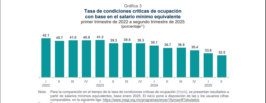 Dicho indicador contrasta los ingresos y las horas trabajadas por las personas, que a nivel nacional reportó una tasa del 32.5 por ciento.