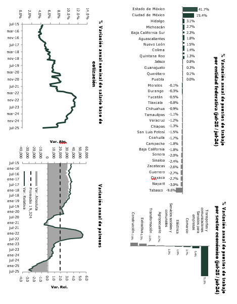 Por entidad federativa destacan Estado de México y Ciudad de México debido al aumento registrado en el sector de transportes y comunicacionales impulsado por el inicio de la prueba piloto del programa hacia trabajadores de plataformas digitales.