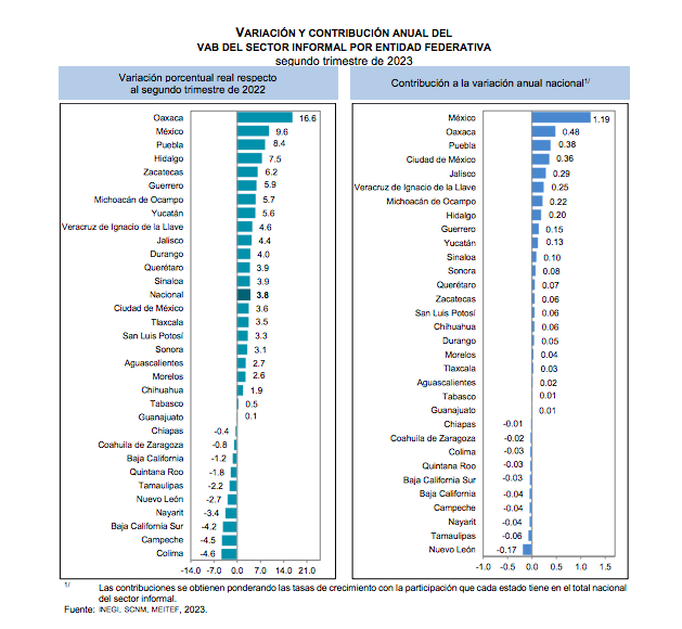 El INEGI además mide la variación del VAB no solo dentro de la economía total de los estados como se acaba de referir en los párrafos de arriba, sino que mide la variación al interior de la economía informal.
