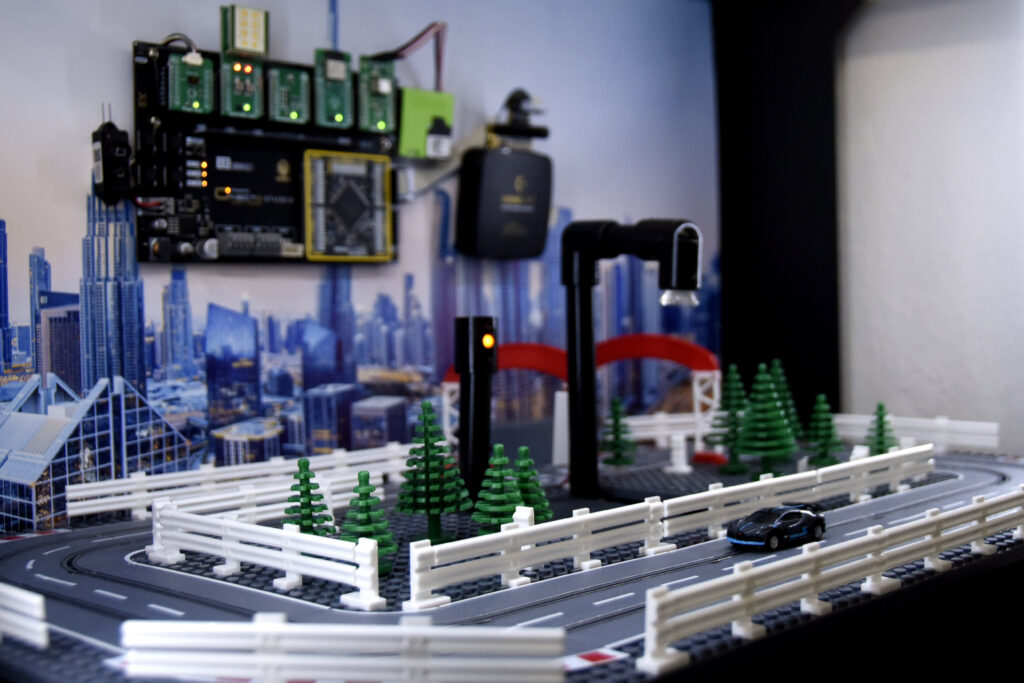 En el recorrido, Jesús Adán Cortés Campech explicó a los funcionarios universitarios las bondades del laboratorio integrado por seis ecosistemas o simuladores: un estanque de peces, incubadora de huevos, brazo robótico, motor a escala, ciudad a escala y un sistema de cultivo de semillas. Además, 10 tarjetas sin ecosistemas.