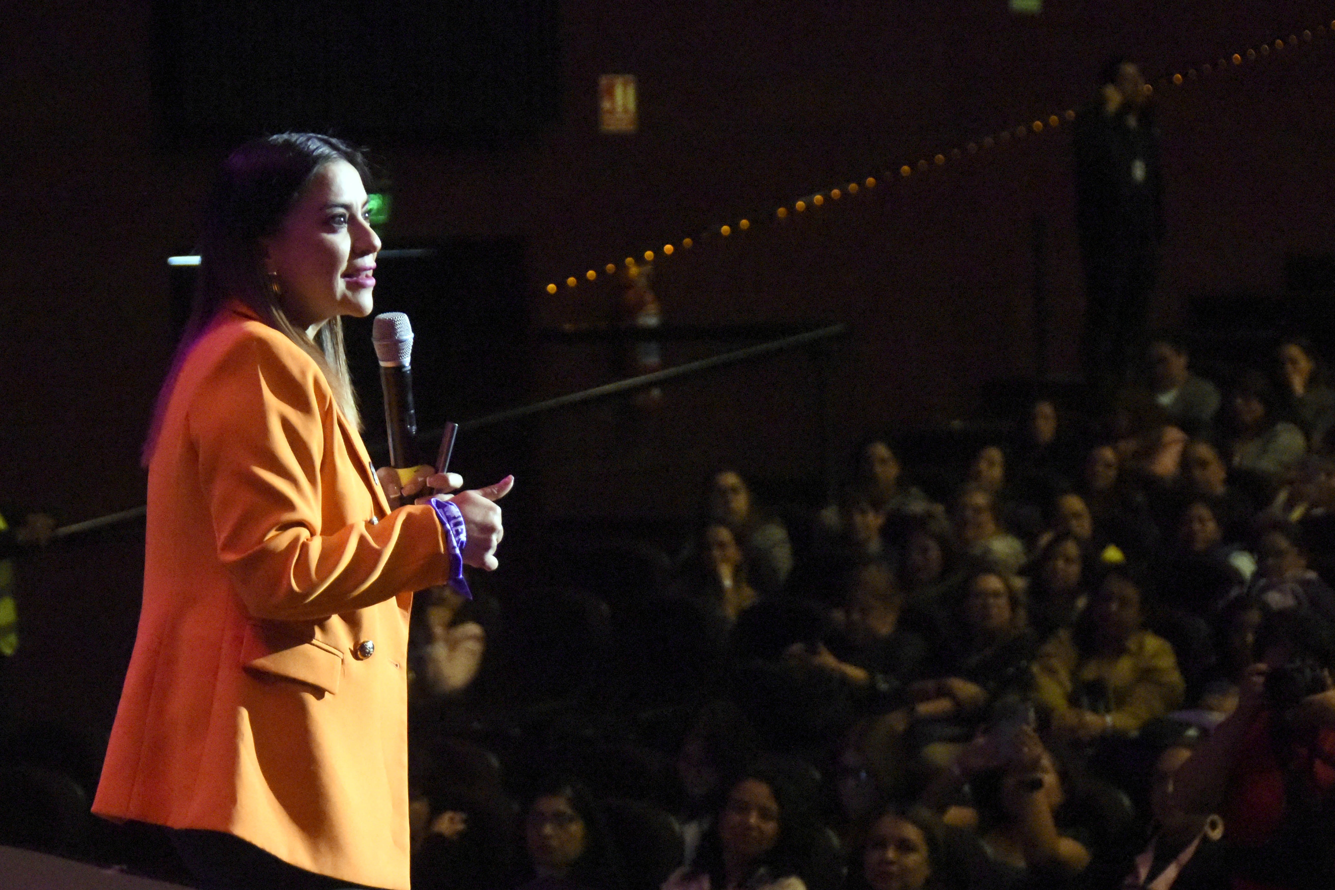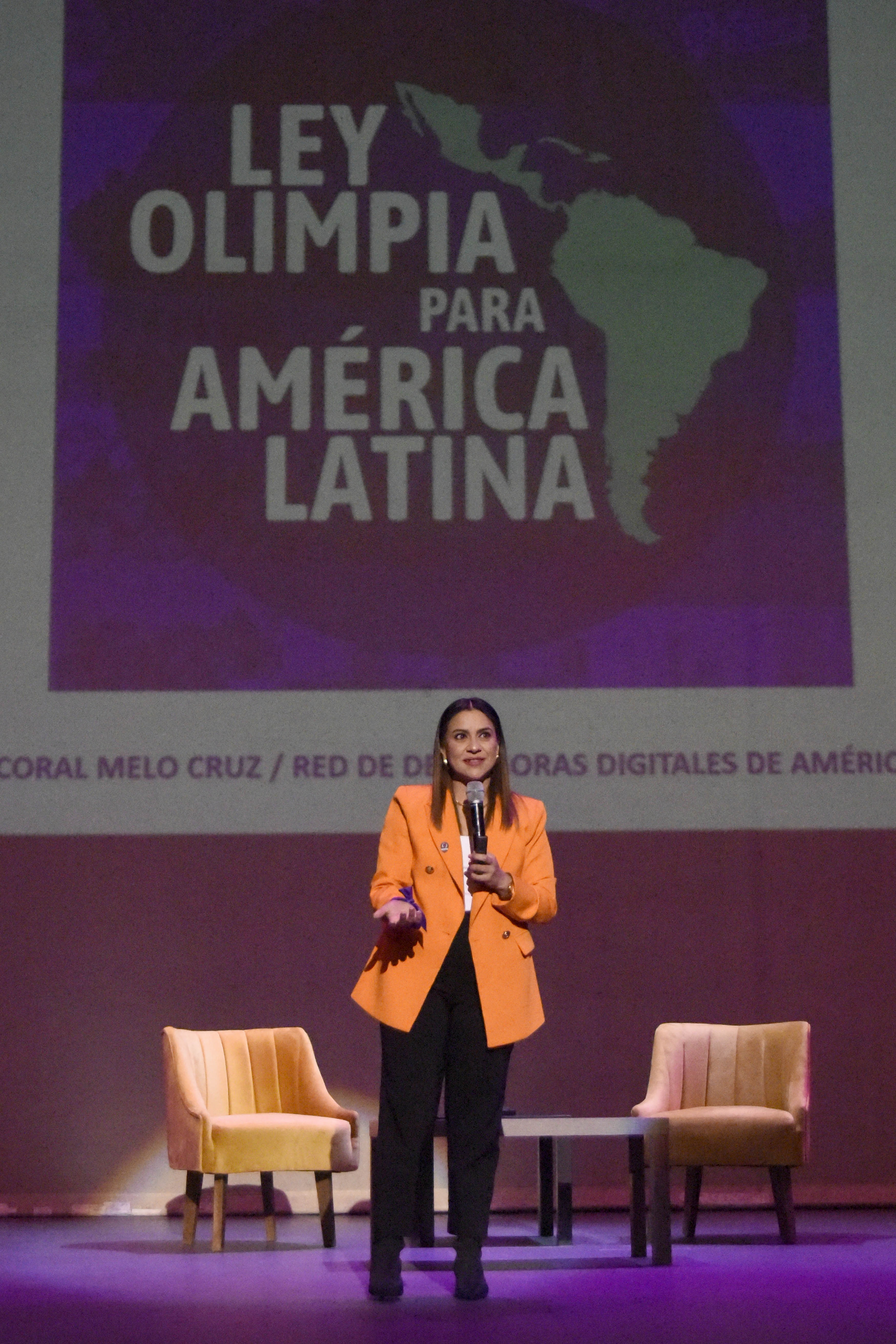 En su conferencia, la activista y creadora del primer violentómetro virtual, expuso que tras sufrir violencia digital por parte de una expareja inició una lucha de 7 años para crear y promover una ley que penaliza estas prácticas, la cual lleva su nombre: Ley Olimpia, un hito en América Latina para castigar este tipo de violencia y es el primer conjunto de normas realizada por víctimas.