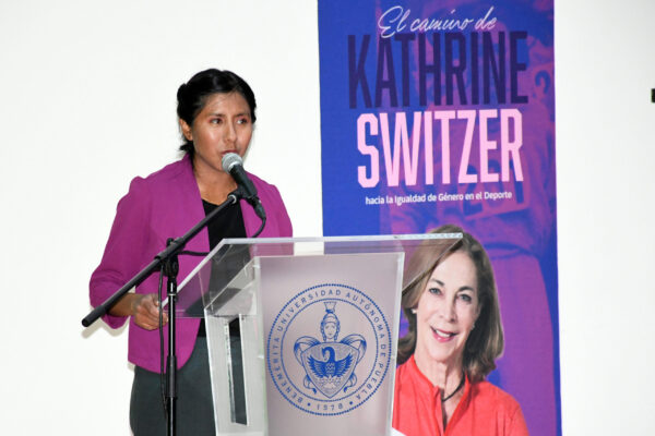En su intervención, la Rectora María Lilia Cedillo Ramírez reconoció la trayectoria de Kathrine Switzer, quien es un ejemplo para las mujeres. “Ella ha sido una inspiración para las atletas en el mundo. Gracias por darnos esa oportunidad. En esta plática nos ha demostrado cómo tenemos que ver el feminismo e ir de la mano de nuestros compañeros, padres y hermanos”.