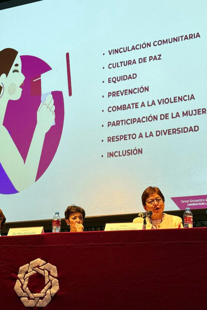 A este encuentro al que asistieron rectoras, directoras e investigadoras para fomentar el diálogo y la colaboración en torno a temas cruciales para la educación y la sociedad, la Rectora Cedillo Ramírez sostuvo que en este camino, además de trabajar en el ámbito de la prevención, las instituciones deben fomentar en su comunidad universitaria una cultura de paz, de equidad y de inclusión, bases para construir la paz y la vinculación comunitaria.