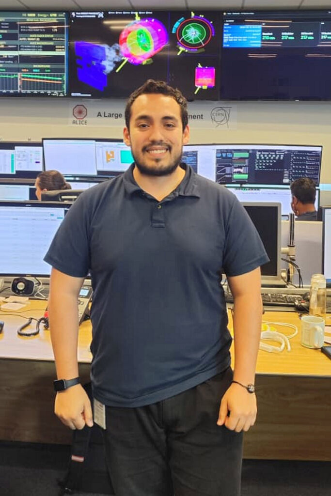 Originario de Orizaba, Veracruz, actualmente desarrolla su tesis para obtener el grado de doctor en Física Aplicada, bajo la supervisión de los doctores Mario Rodríguez Cahuantzi y Arturo Fernández Téllez, sobre un tema de gran interés para el CERN: el detector Identificador de Muones (MID) dentro del proyecto de actualización del experimento ALICE. Este dará paso a ALICE-3, previsto para entrar en operación en 2035, con una configuración completamente nueva: más compacto y ligero, con un alcance angular ampliado, capacidades avanzadas de identificación de partículas y orientado a explorar con una precisión sin precedentes la física del plasma de quarks y gluones.