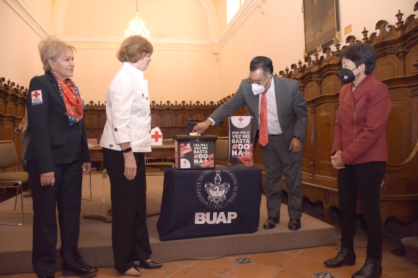 Más tarde, funcionarios de diferentes dependencias universitarias de la BUAP emularon el ejemplo de la Rectora de la BUAP, la primera en extender su donativo, con la entrega de su aportación a la Cruz Roja Mexicana. En este evento también asistió la coordinadora del Comité de Damas Voluntarias de la Cruz Roja Mexicana, delegación Puebla, María Eugenia Gómez de Lara, e integrantes del Comité Directivo de Cruz Roja.