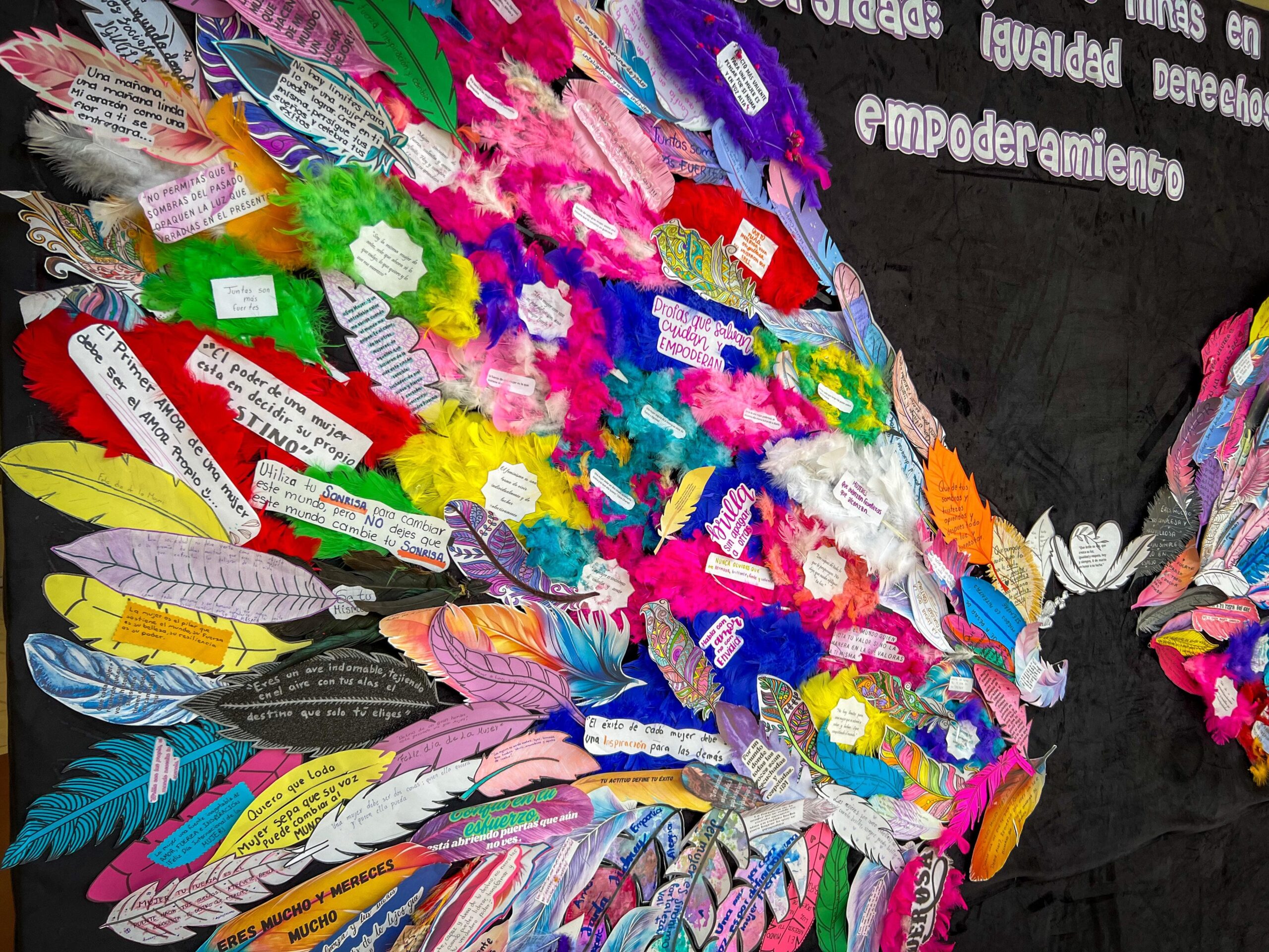 Como parte de estas acciones, se realizó un mural de alas que simboliza la prevención de la violencia, promoviendo un mensaje de empoderamiento y solidaridad entre las mujeres de la comunidad universitaria. A través de este mural, se busca crear conciencia sobre la importancia de construir espacios seguros y libres de violencia dentro y fuera de la institución.