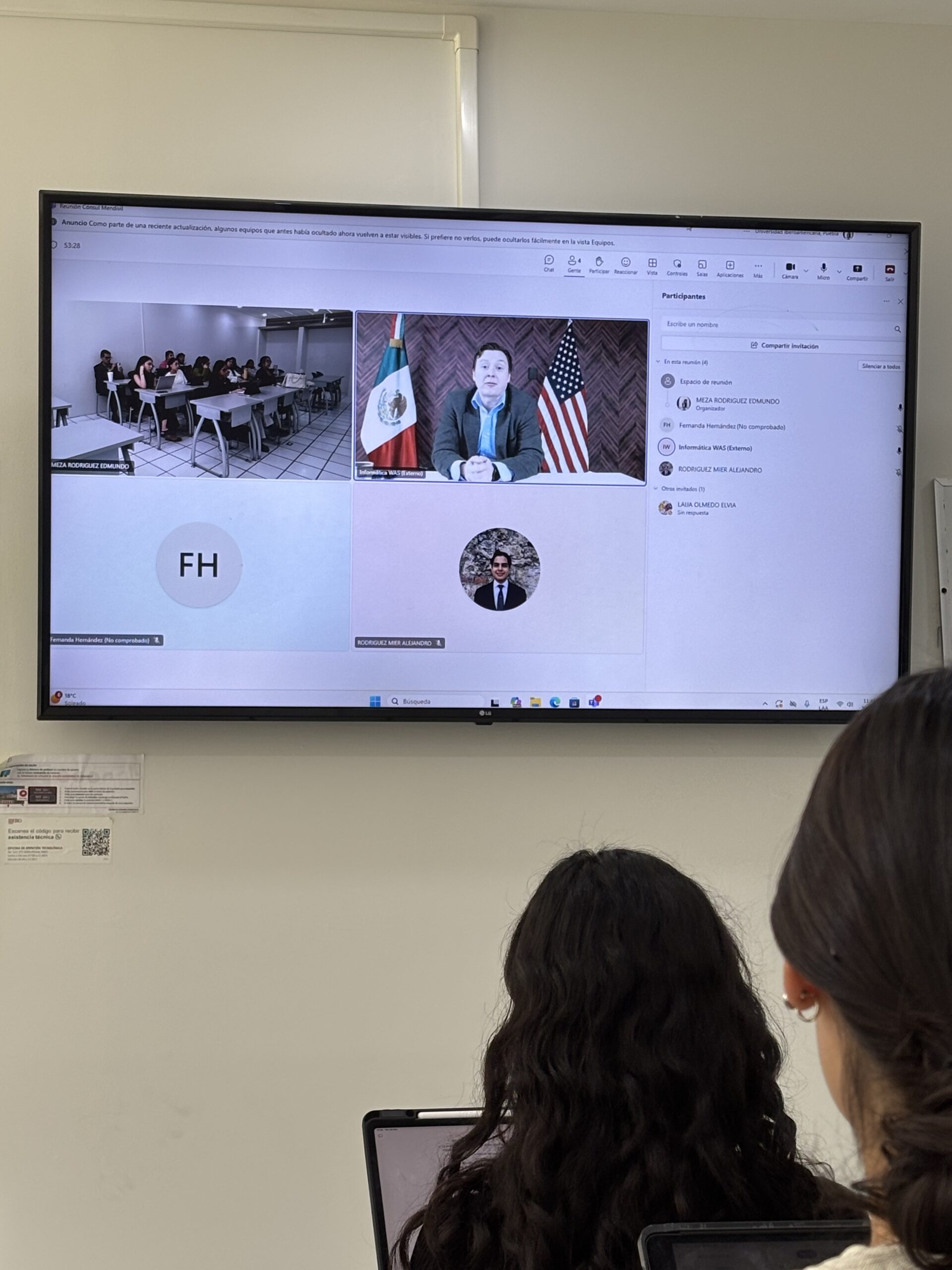 Por ello, Rodrigo Daniel Mendivil Ocampo, jefe de la Sección Consular de la Embajada de México en Washington D. C., sostuvo un diálogo con estudiantes de la Licenciatura en Relaciones Internacionales de la IBERO Puebla. La sesión se llevó a cabo en el marco de la asignatura de Política Exterior de Estados Unidos, impartida por el Dr. Edmundo Meza Rodríguez.