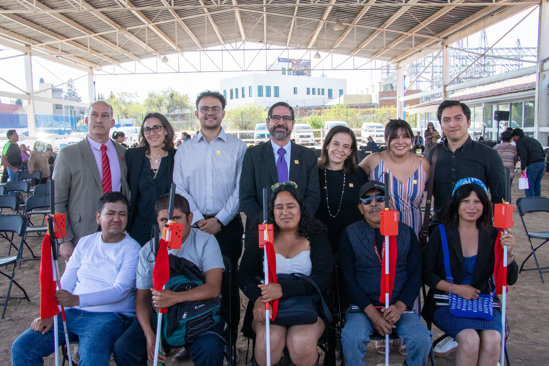 A este beneficio se sumó el talento y la excelencia académica con pertinencia social de la IBERO Puebla, con el proyecto Gioxance, realizado por Ximena Cisneros Rosete, de la Licenciatura en Ingeniería Biomédica, y Alfredo Barranco Ahued, de la Licenciatura en Ingeniería en Sistemas Computacionales. La iniciativa consiste en bastones inteligentes para personas con discapacidad visual, los cuales fueron entregados a cinco usuarios y sus familias.