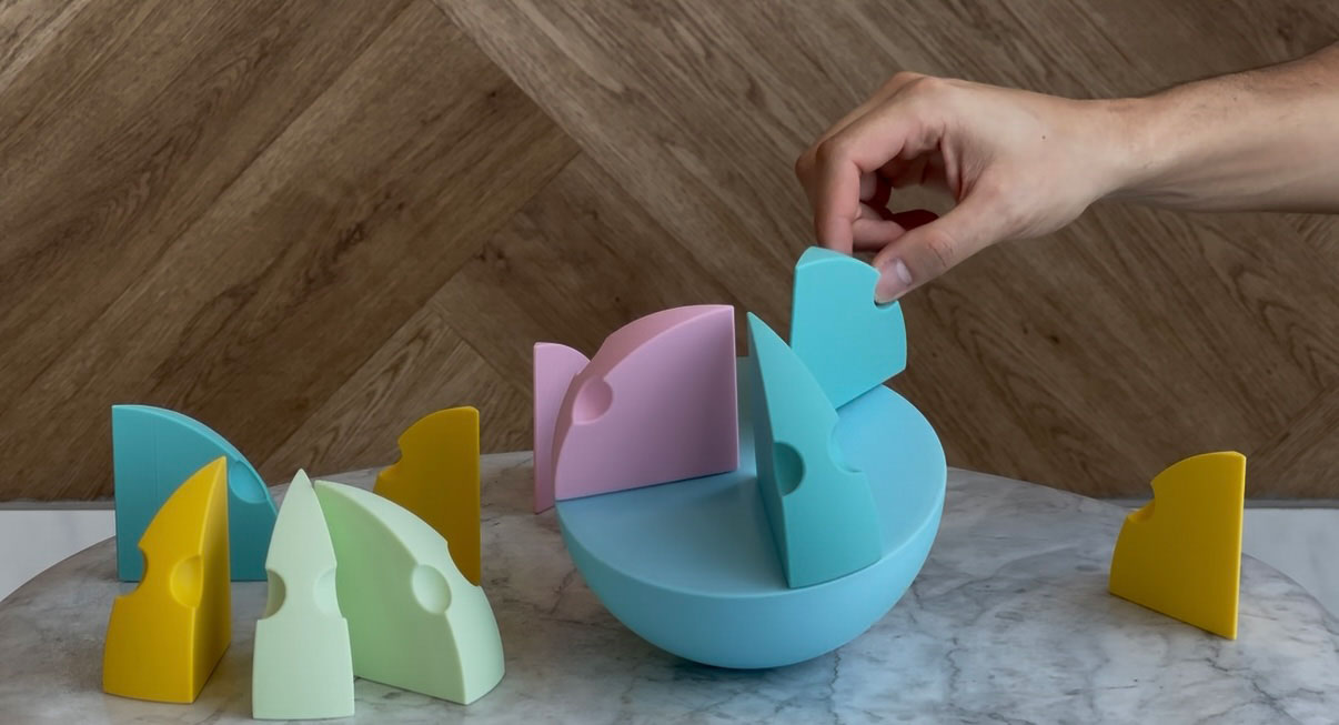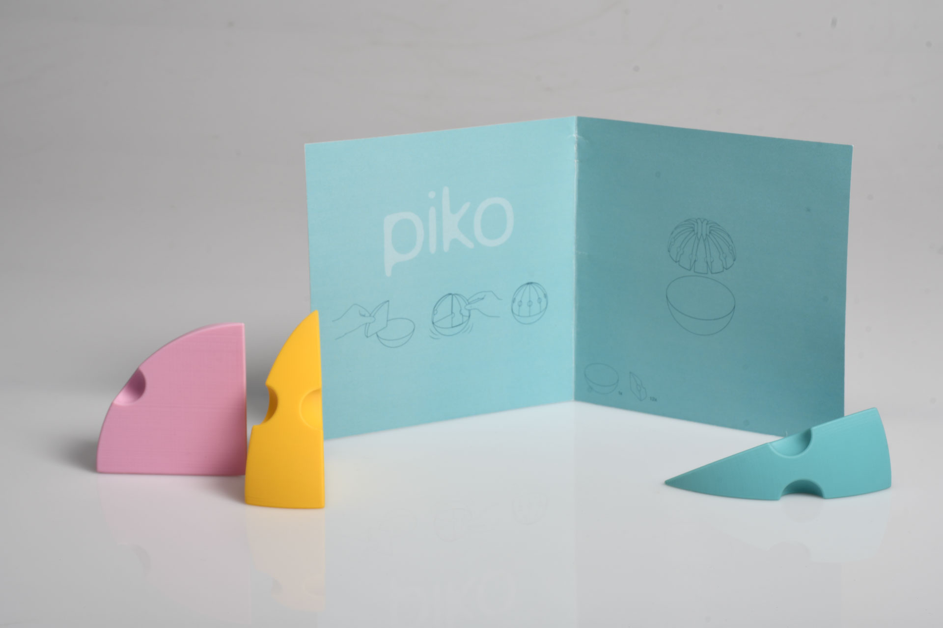 Piko propone el reto de colocar 12 piezas idénticas, pero con distintos pesos, sobre una media esfera, poniendo a prueba la estabilidad y la concentración. Finalmente, en Olie, el participante ensambla 22 piezas de diferentes formas y tamaños distribuidas en tres niveles, completando una media esfera que simboliza la armonía lograda.
