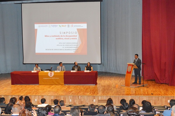 La Facultad de Ciencias para el Desarrollo Humano (FCDH) de la Universidad Autónoma de Tlaxcala (UATx), en coordinación con el Colegio de Estudios Científicos y Tecnológicos del Estado (CECYTE-AMSAD), llevaron a cabo el simposio relativo a los mitos y realidades de la discapacidad auditiva, visual y motriz, intitulado “Los trastornos generalizados del neurodesarrollo, entendiendo su origen y desarrollo”, dirigido al personal administrativo de ese subsistema, efectuado en las instalaciones del Teatro Universitario.