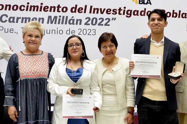 Por todo el trabajo que realiza bajo el respaldo de la BUAP, así como por otros méritos académicos, fue acreedora a la Medalla al Reconocimiento del Investigador Poblano “María del Carmen Millán” 2022, con lo cual se ratifica el compromiso de los docentes con la educación y la vinculación social.